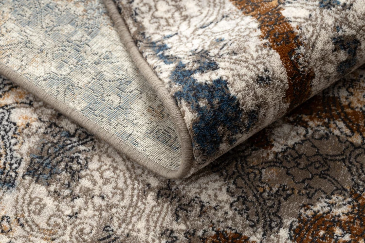 Beżowy dywan z abstrakcyjnym wzorem, który idealnie wypełni korytarz, nadając mu elegancki i nowoczesny charakter.