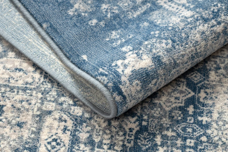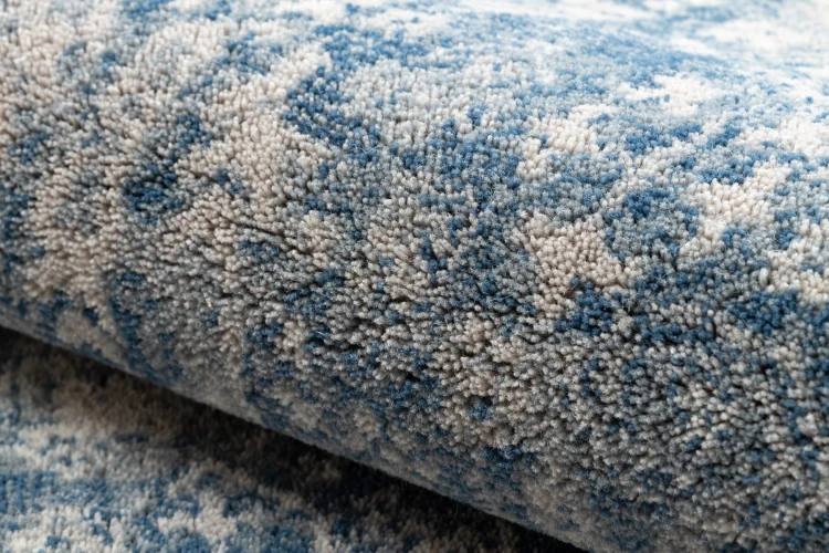 Granatowy dywan z abstrakcyjnym wzorem, który doda wnętrzu głębi i nowoczesnego charakteru.