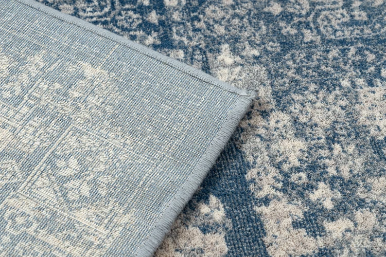 Granatowy dywan z abstrakcyjnym wzorem, który doda wnętrzu głębi i nowoczesnego charakteru.