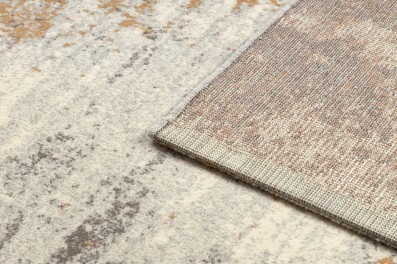 Beżowy dywan z wełny z abstrakcyjnym wzorem, który nada korytarzowi ciepły, elegancki charakter.