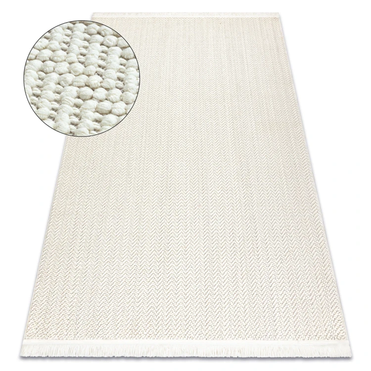 Beżowy dywan z abstrakcyjnym wzorem jodełki, który doskonale wpisze się w nowoczesny salon lub pokój.