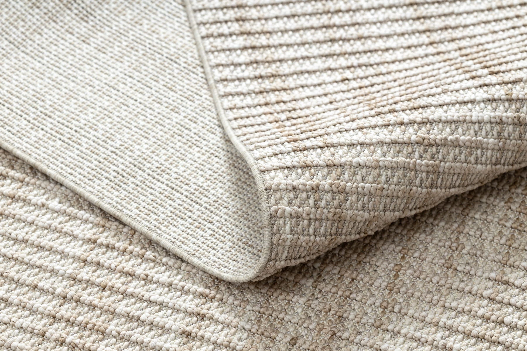 Beżowy dywan z abstrakcyjnym wzorem, który doskonale wpisze się w salon lub pokój, tworząc ciepłą i harmonijną atmosferę.