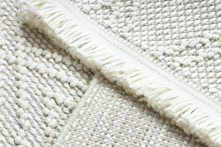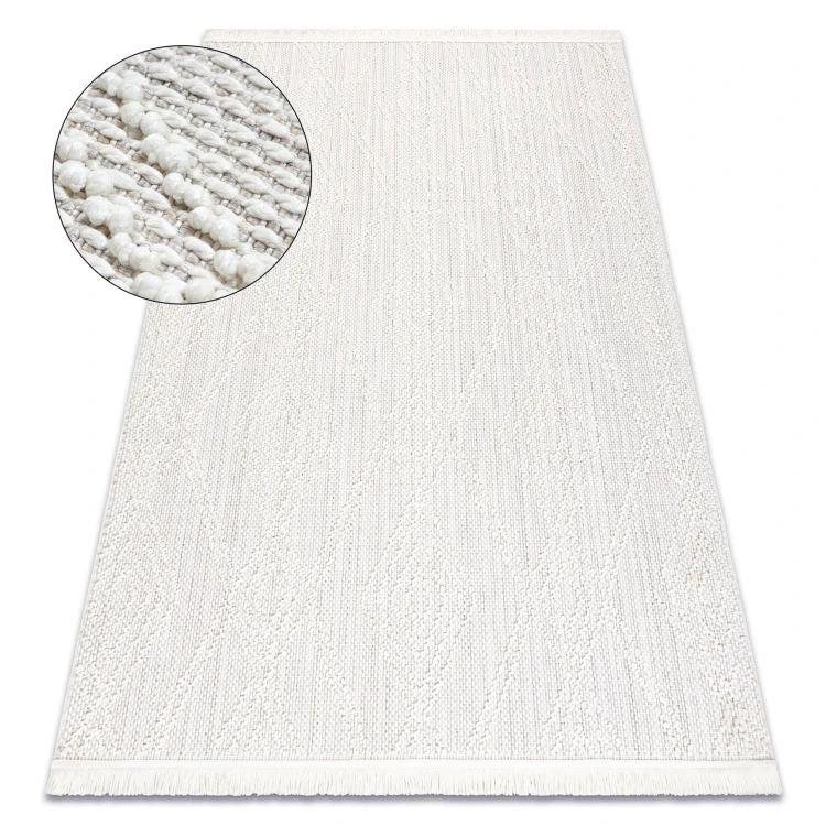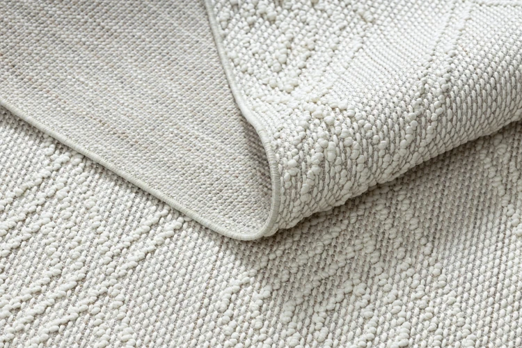 Biały dywan z tradycyjnym wzorem rombów, który wprowadzi do salonu lub pokoju klasyczną elegancję.