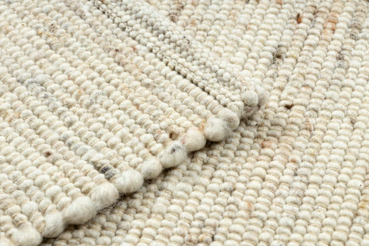 Beżowy dywan z wełny z runem 20 mm, który stworzy w salonie atmosferę ciepła i naturalnego spokoju.
