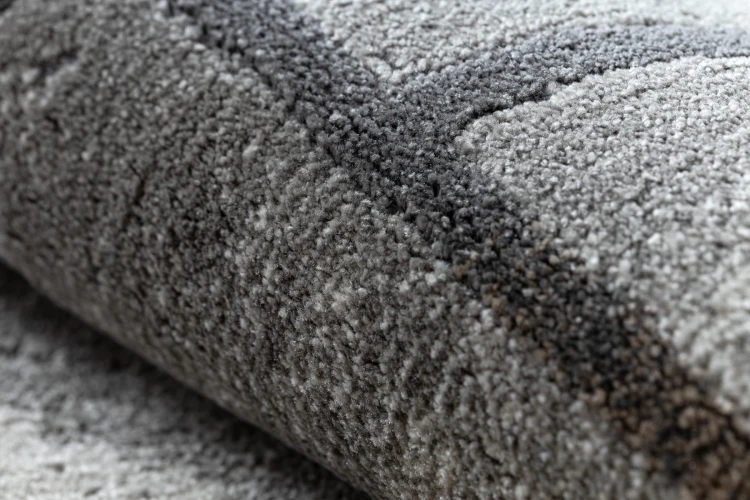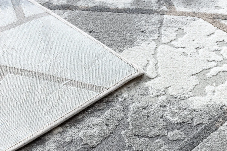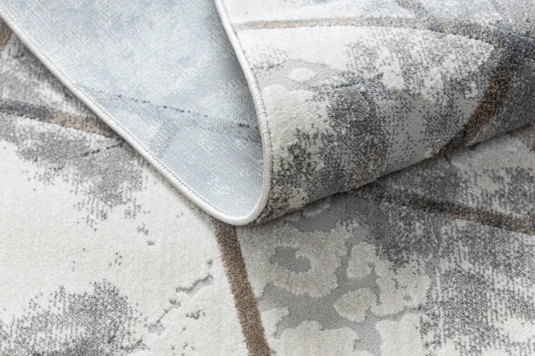 Kremowo-szary dywan z abstrakcyjnym wzorem, który doskonale wpisze się w nowoczesny salon lub pokój.
