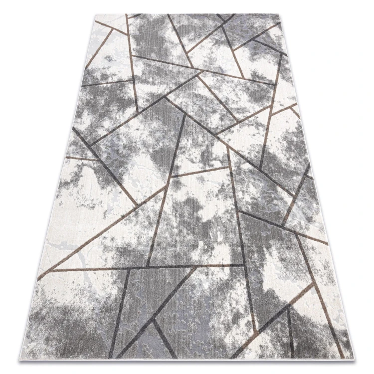 Kremowo-szary dywan z abstrakcyjnym wzorem, który doskonale wpisze się w nowoczesny salon lub pokój.