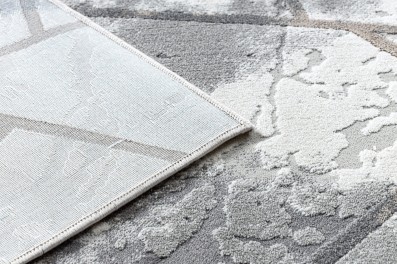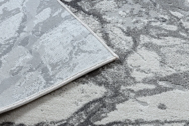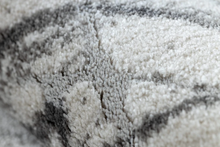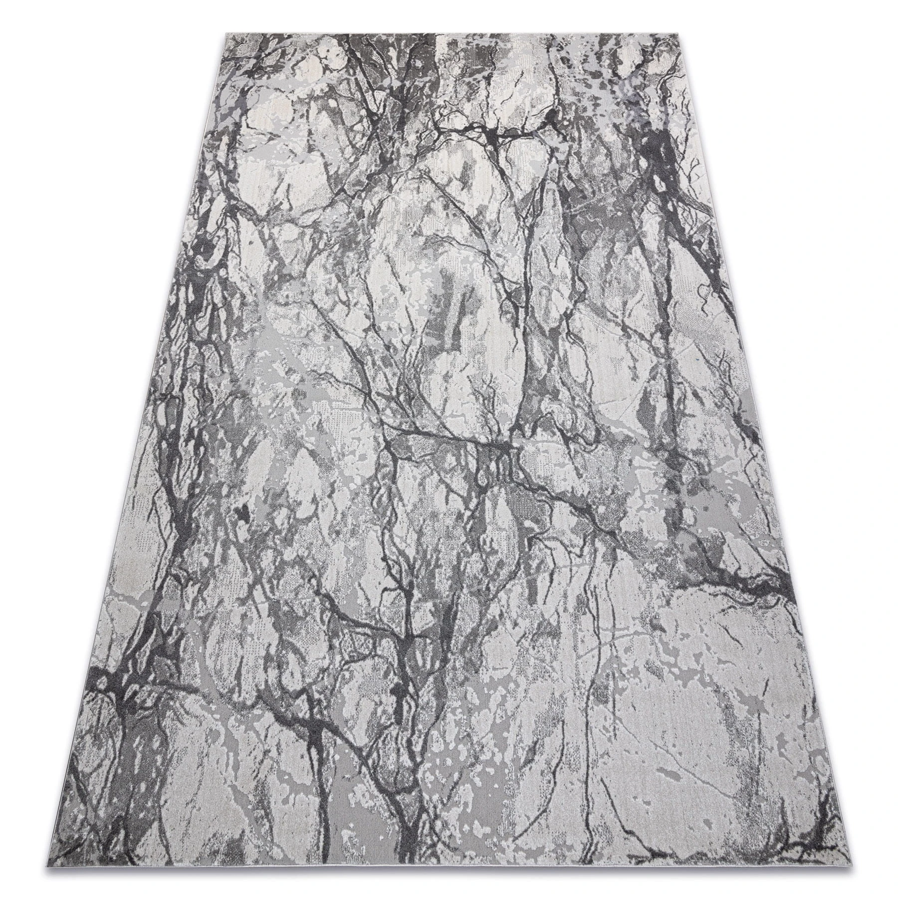Kremowo-szary dywan z abstrakcyjnym wzorem inspirowanym marmurem, który doskonale wpisze się w nowoczesny salon lub pokój.