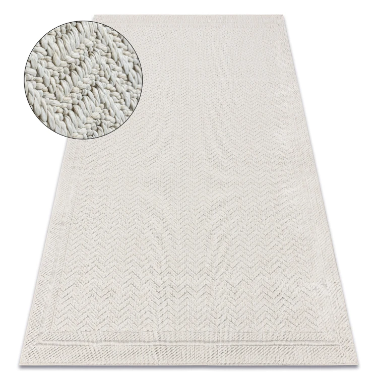 Kremowy dywan z delikatną ramką, który wprowadzi do wnętrza stonowaną elegancję i subtelnie wyznacz strefę wypoczynku.