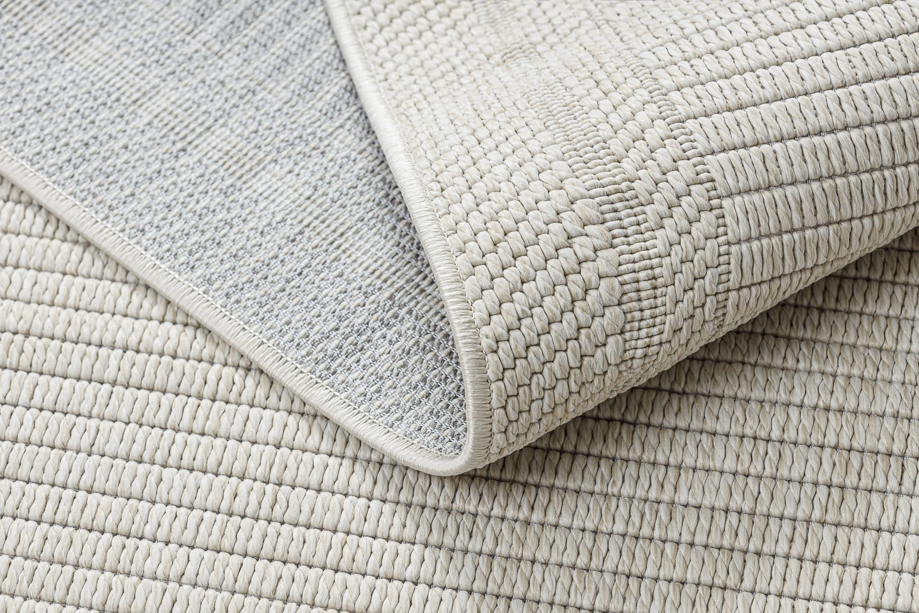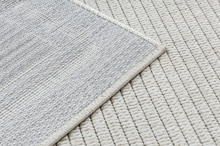 Kremowy dywan sznurkowy z delikatną ramką, który dodaje wnętrzu eleganckiego charakteru w minimalistycznym stylu.