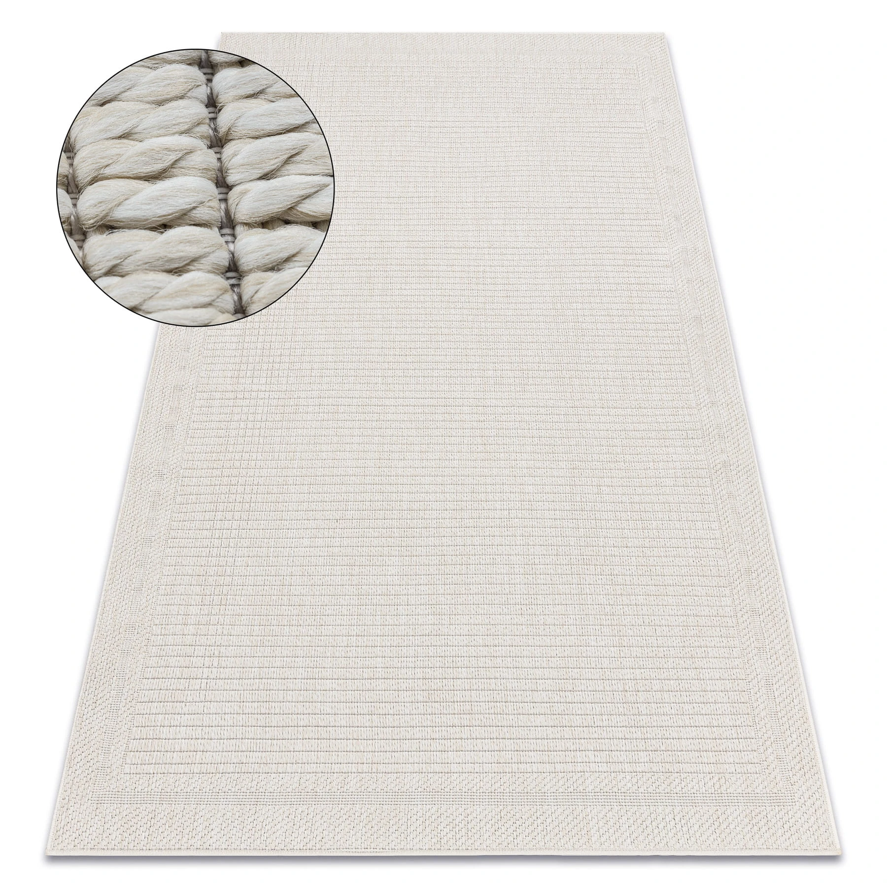 Kremowy dywan sznurkowy z motywem ramki, który subtelnie podkreśli charakter korytarza i doda mu eleganckiego wykończenia.