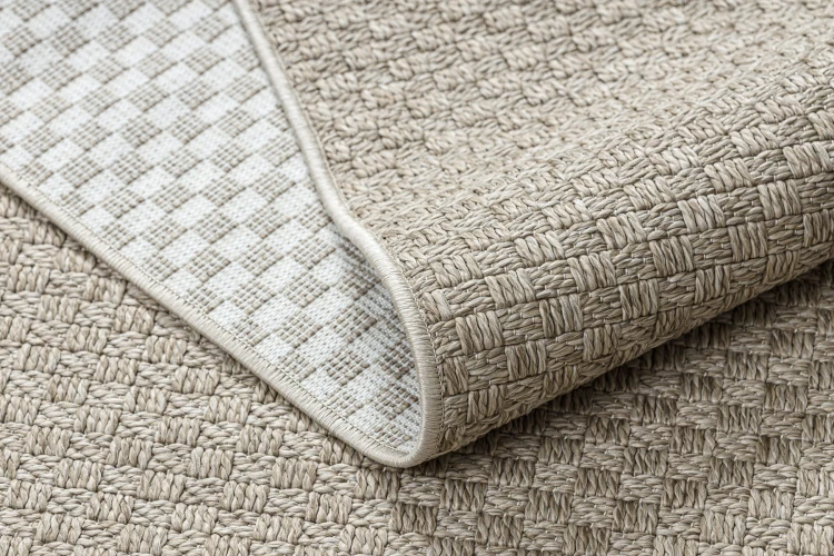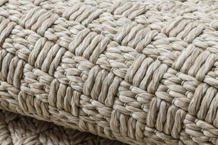 Beżowy dywan jednokolorowy ze sznurkową fakturą, który wprowadzi do wnętrza naturalny, spokojny charakter.