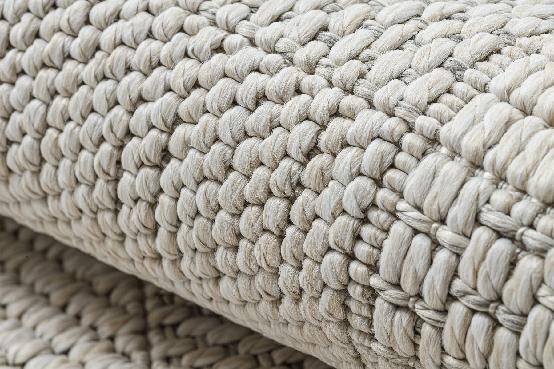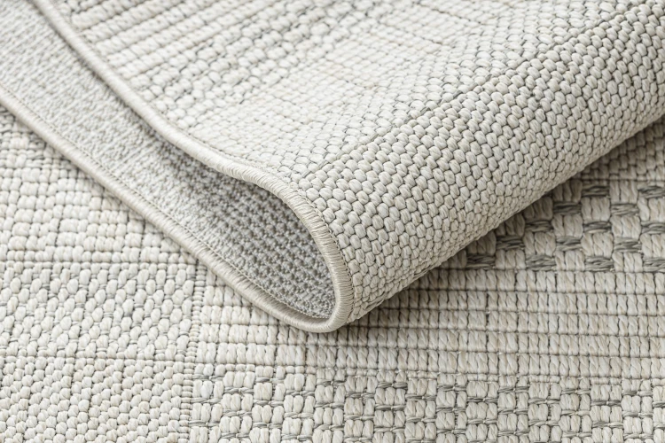 Sznurkowy dywan w odcieniu kremowym, odporny na warunki atmosferyczne, idealny na taras i balkon.