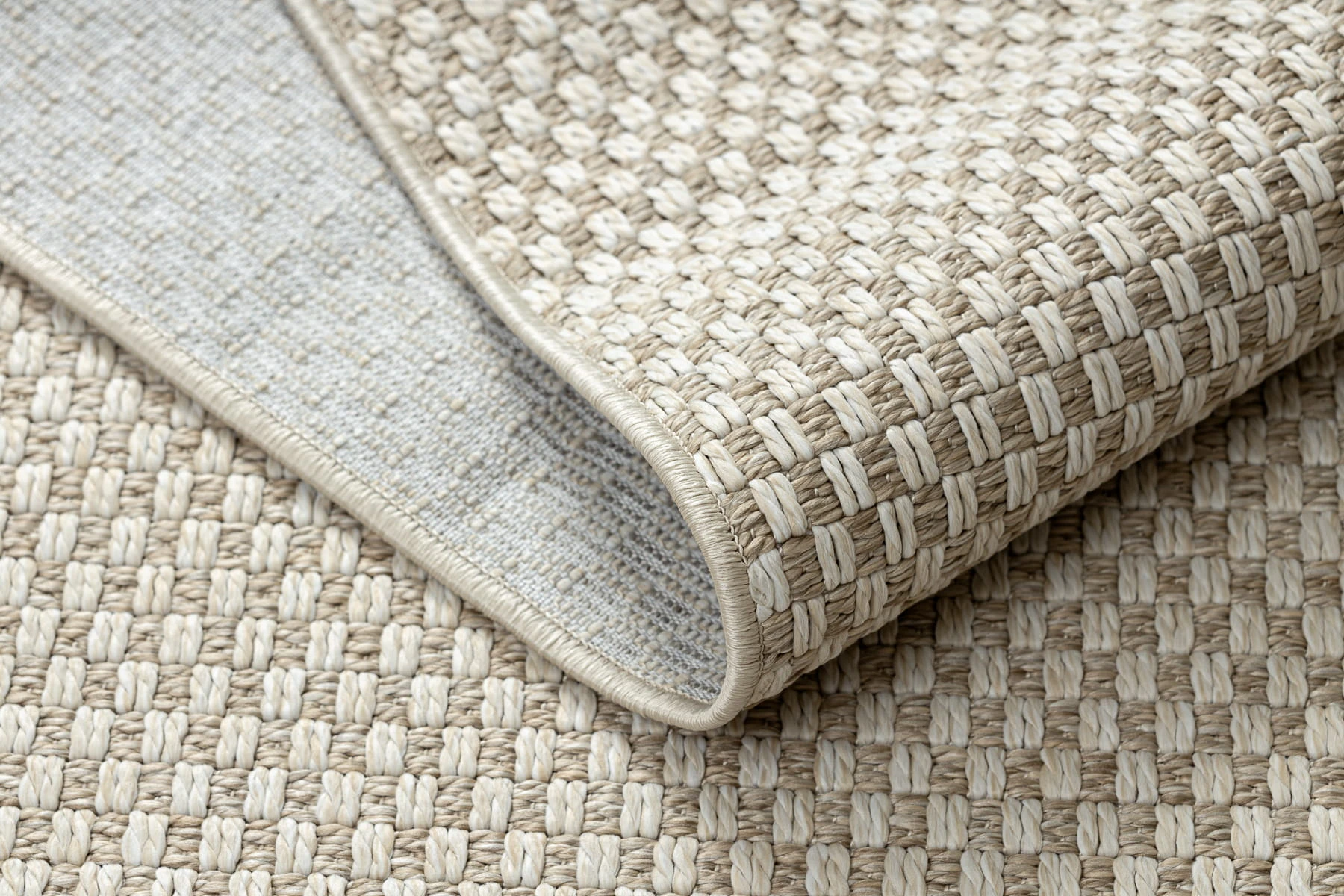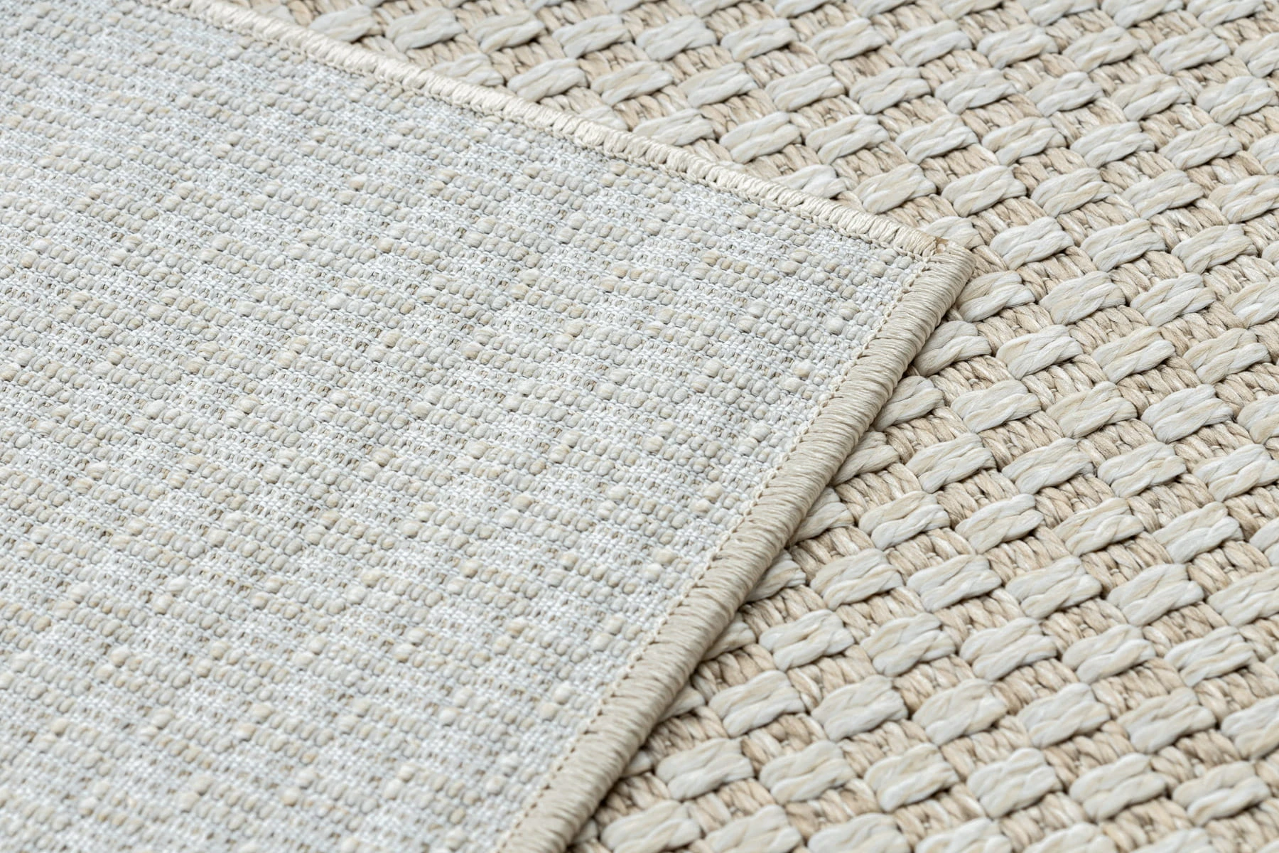 Kremowy dywan jednokolorowy z charakterystyczną sznurkową fakturą, który doda wnętrzu przytulności i naturalnego ciepła.