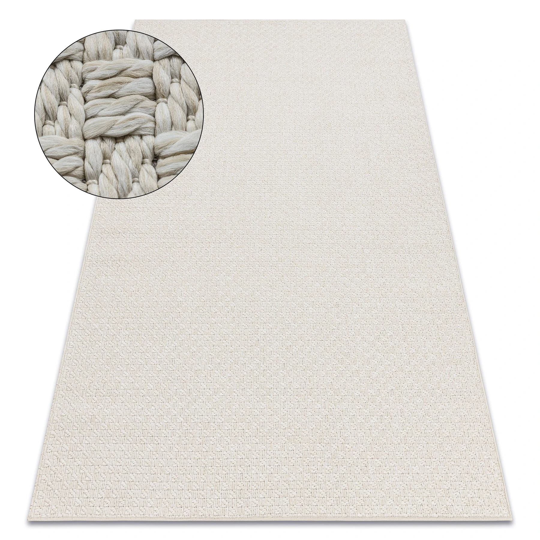 Kremowy dywan jednokolorowy z charakterystyczną sznurkową fakturą, który wprowadzi do wnętrza spokojną elegancję.