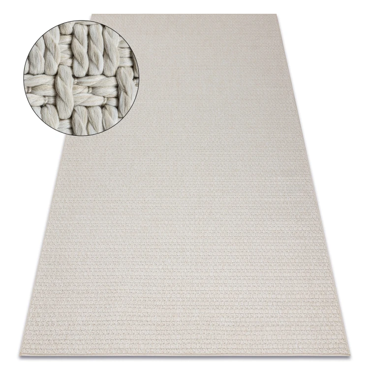 Kremowy dywan jednokolorowy ze sznurkowym splotem, który wprowadzi do wnętrza naturalną elegancję i stonowany charakter.