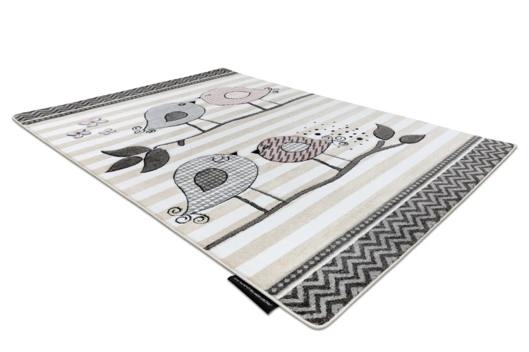 Kremowy dywan z motywem ptaszków, który nada pokojowi dziecka ciepły, radosny charakter.