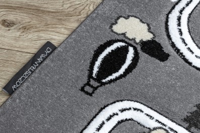 Szary dywan z motywem ptaszków, który subtelnie ożywi pokój dziecka i stworzy przytulną przestrzeń do zabawy.