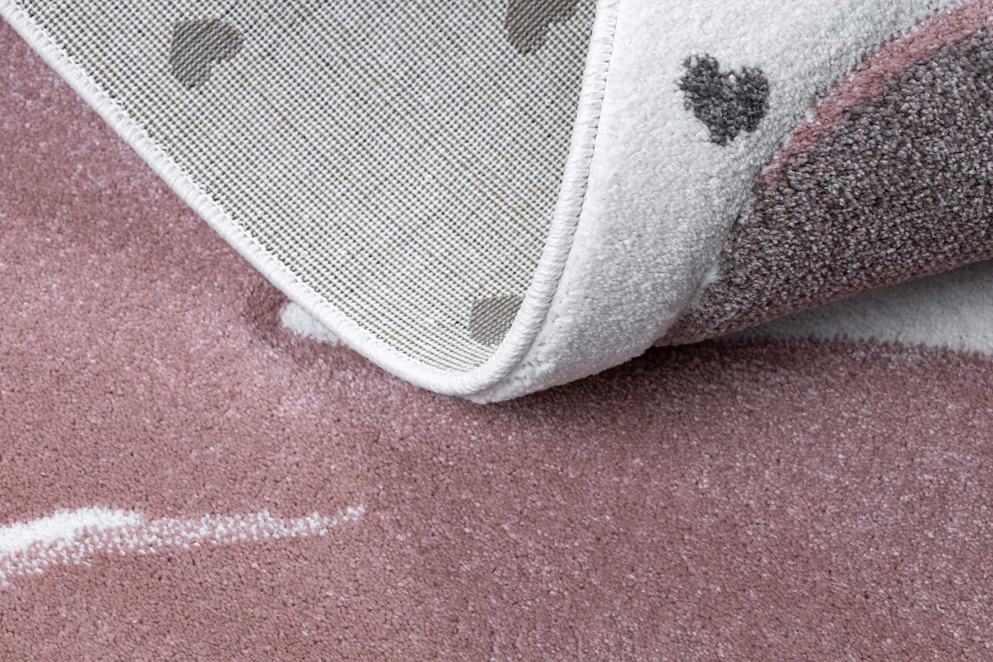 Kremowy dywan z motywem flamingów i serduszek, który delikatnie ożywi pokój dziecka i doda mu ciepły, radosny charakter.