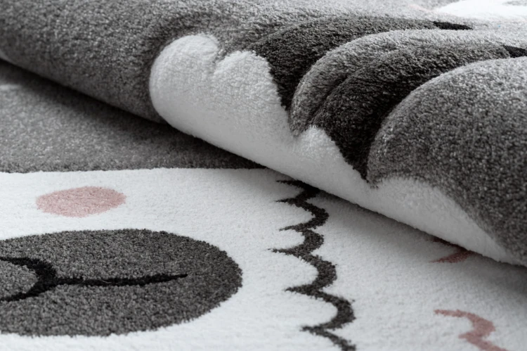 Szary dywan z motywem lamy, który subtelnie ożywi pokój dziecka i stworzy przestrzeń do zabawy.