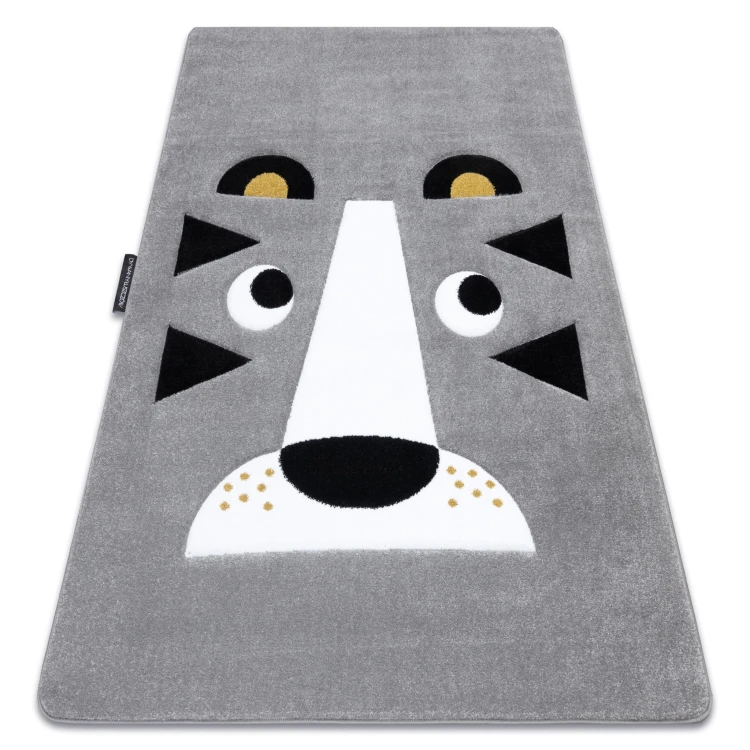 Szary dywan z motywem lwa, który doda pokojowi dziecka odważny charakter i stworzy przestrzeń do zabawy.
