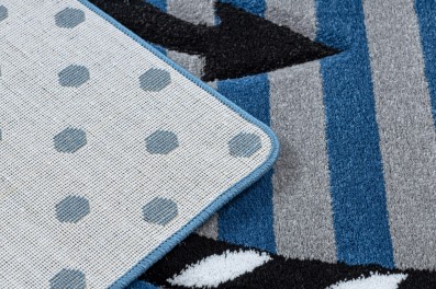 Niebieski dywan z motywem gwiazdek, który ożywi pokój dziecka i stworzy przestrzeń do zabawy.