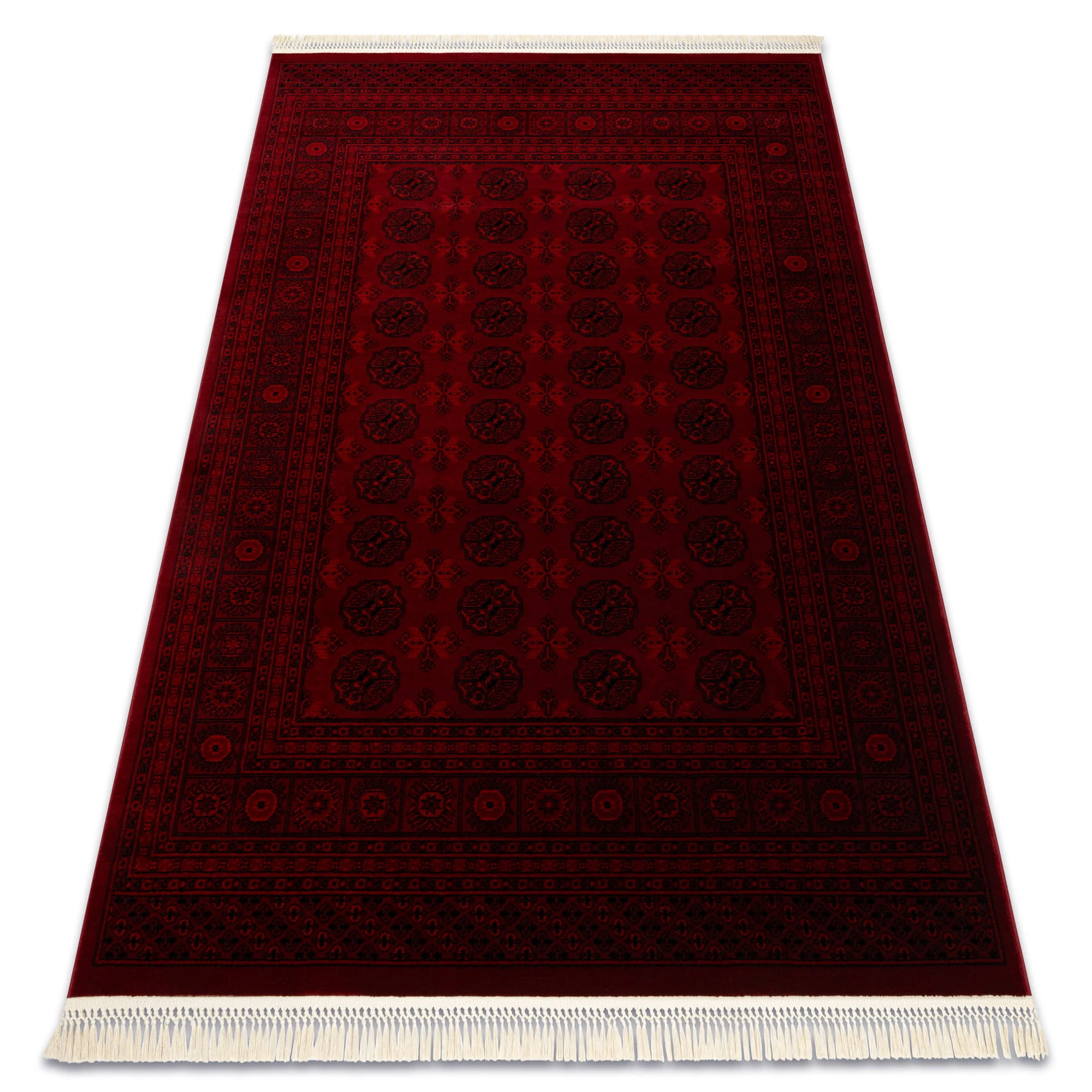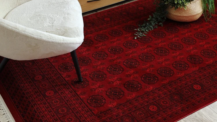 Bordo-czarny dywan z tradycyjnym wzorem Orient, który doda salonowi elegancki charakter w klasycznym stylu.