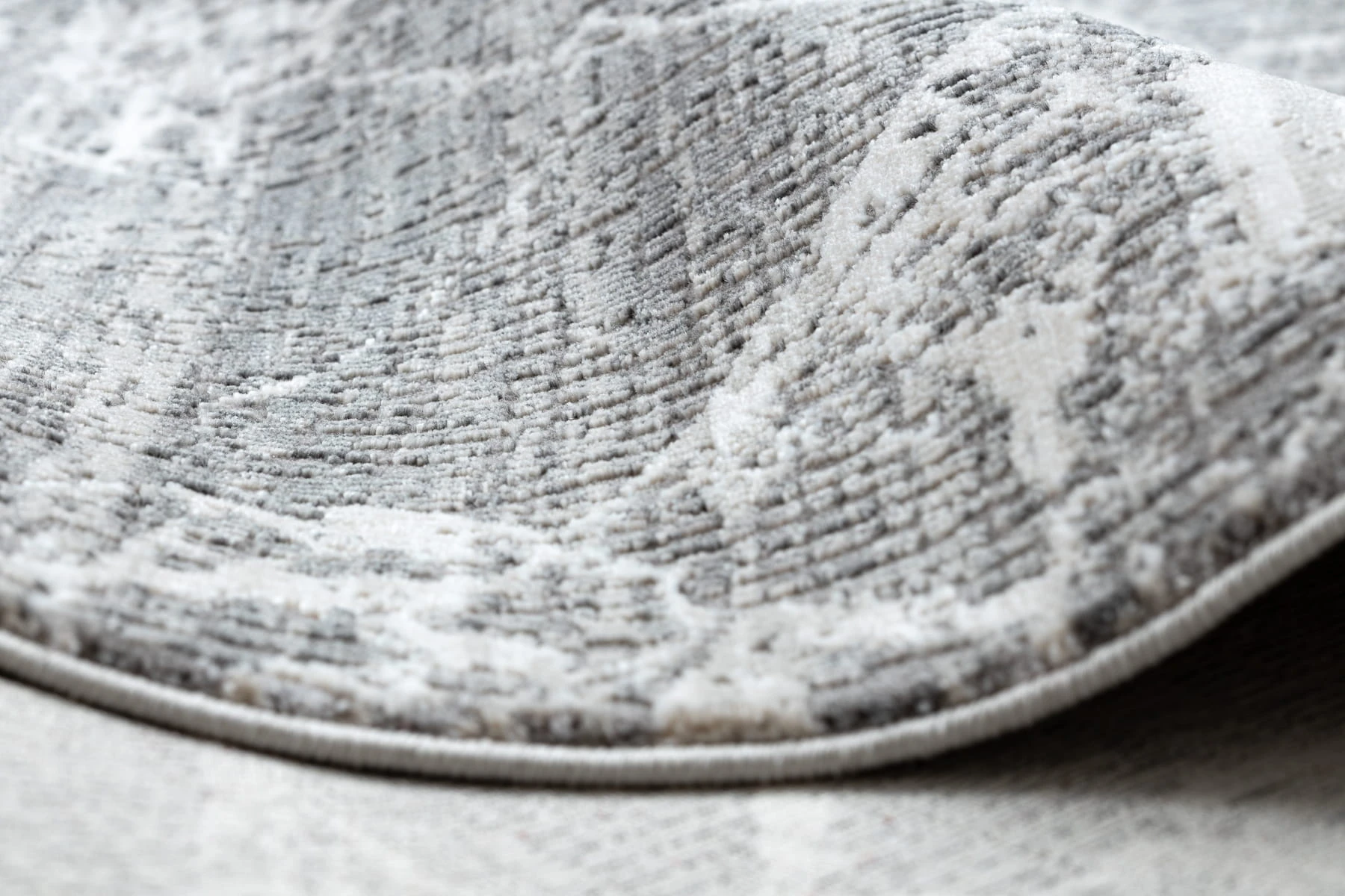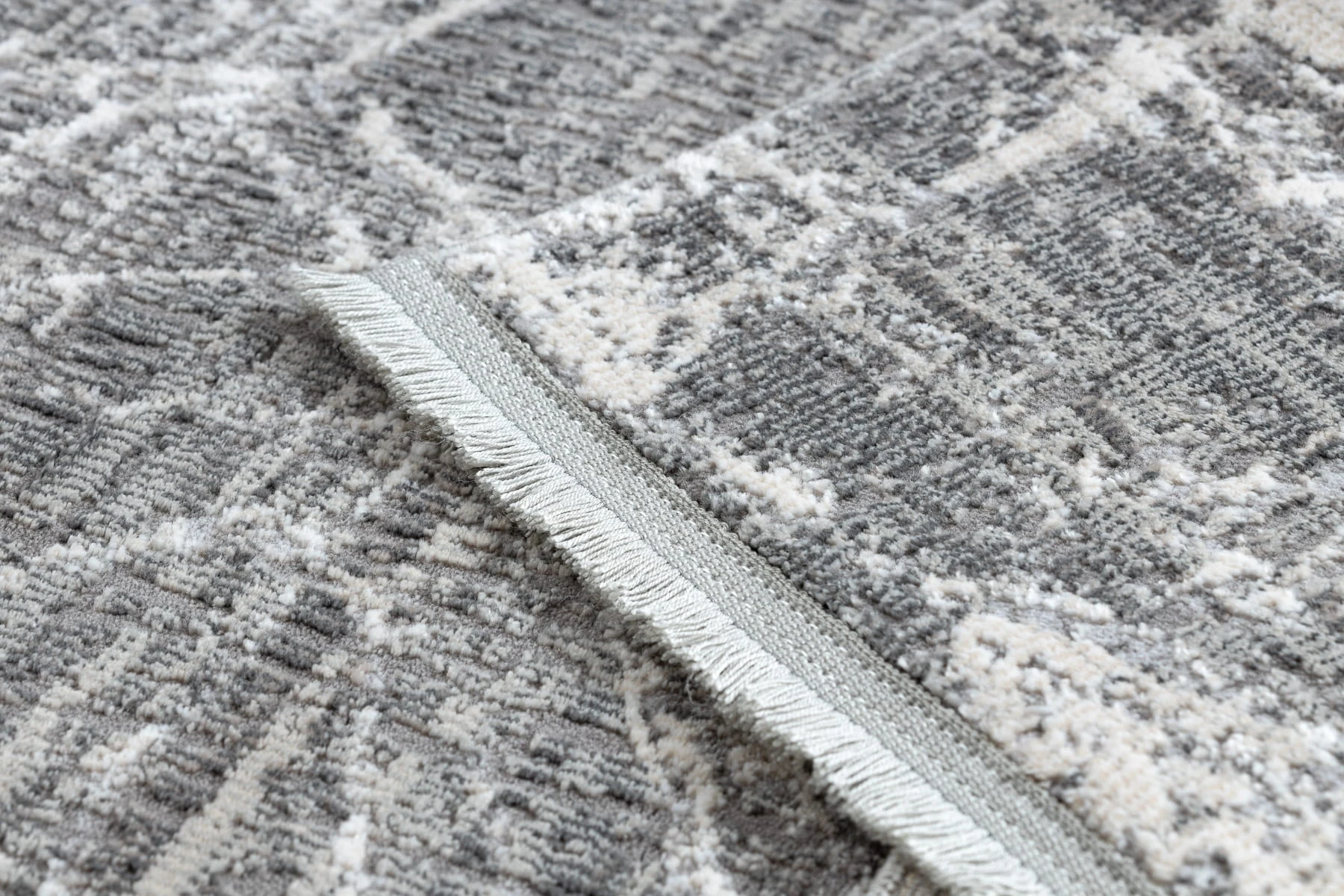 Kremowo-szary dywan z abstrakcyjnym wzorem marmuru, który wprowadzi do salonu elegancki i nowoczesny charakter.
