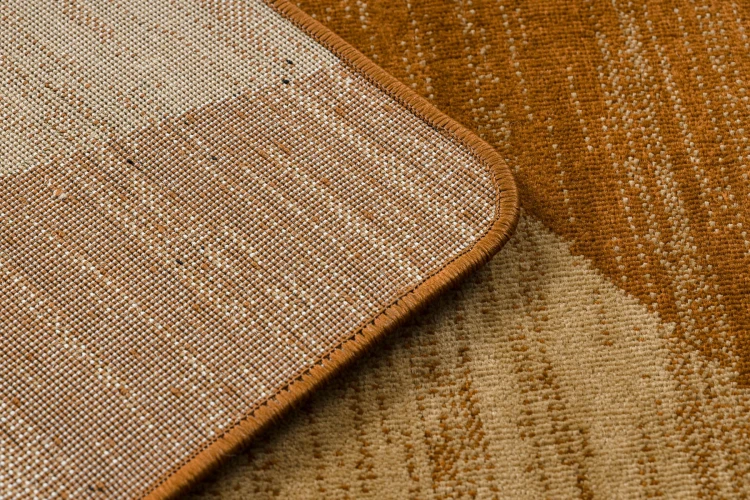 Beżowo-brązowy dywan z geometrycznym wzorem, który wprowadzi do salonu elegancki porządek i ciepłą atmosferę.