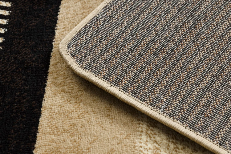 Beżowo-kremowy dywan z geometrycznym wzorem, który doda salonowi elegancki charakter w nowoczesnym stylu.