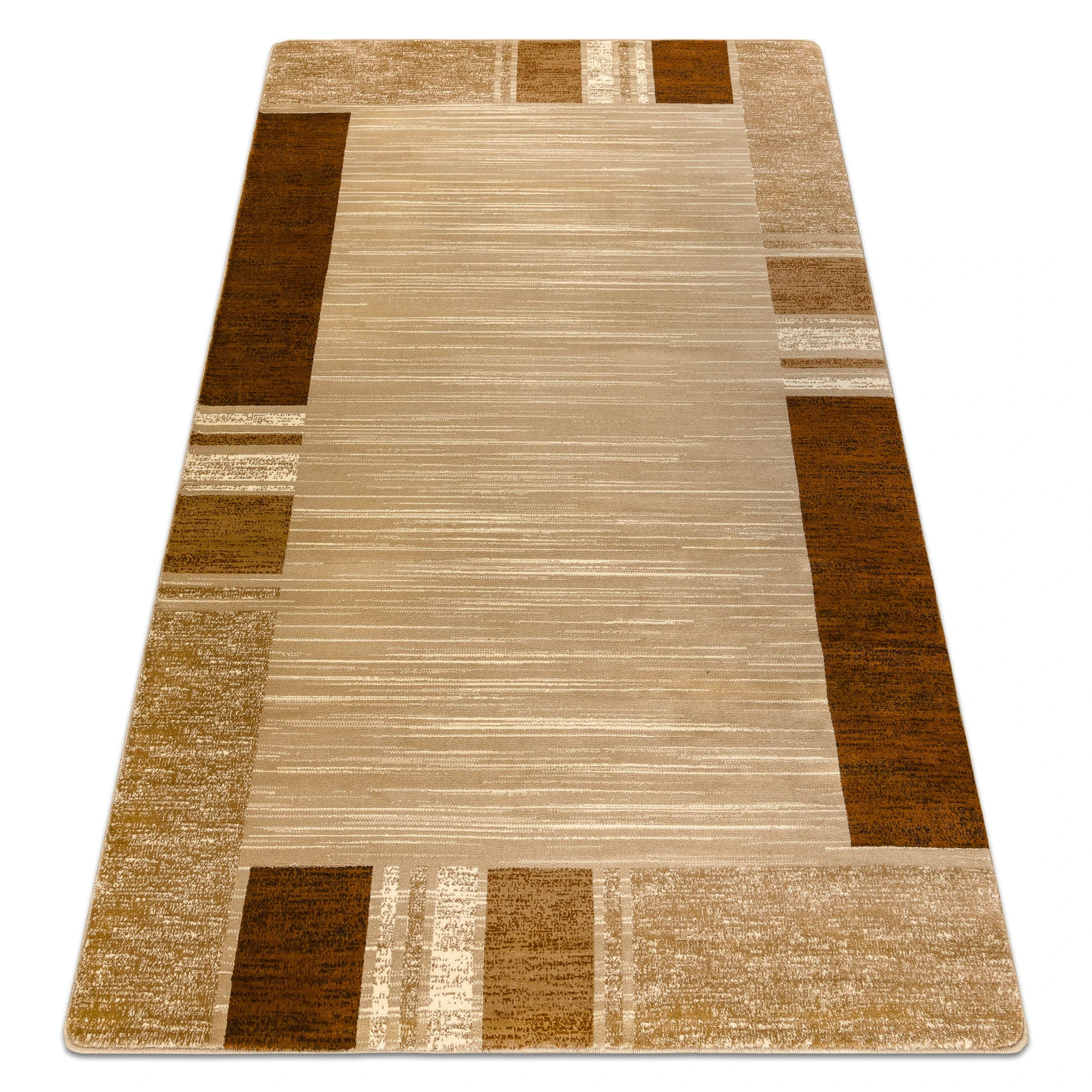 Beżowo-kremowy dywan z delikatną ramką, który subtelnie podkreśli elegancki charakter salonu lub pokoju.