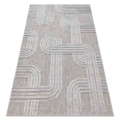 Szary dywan sznurkowy z geometrycznym wzorem, który doskonale sprawdzi się w korytarzu, nadając mu nowoczesny charakter.
