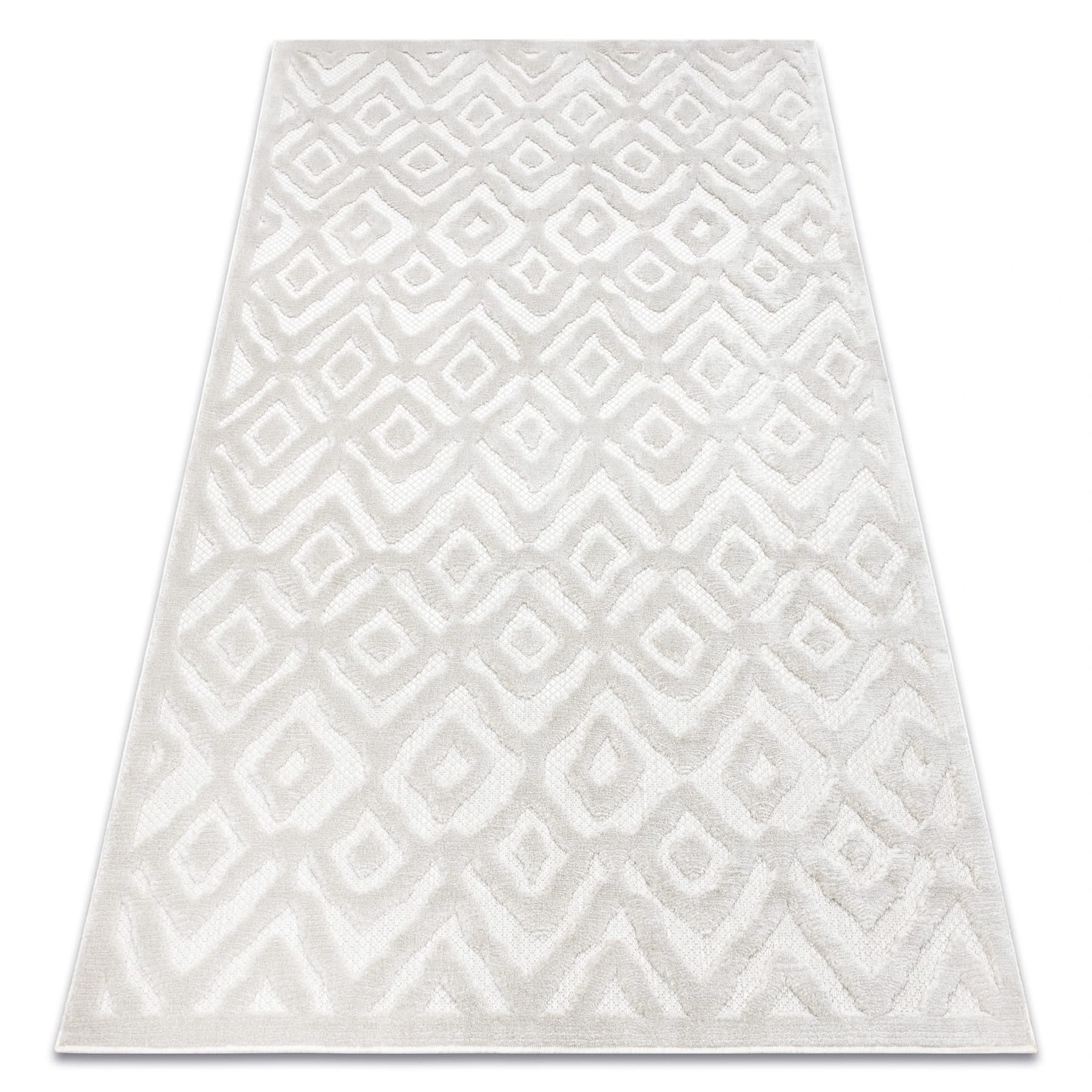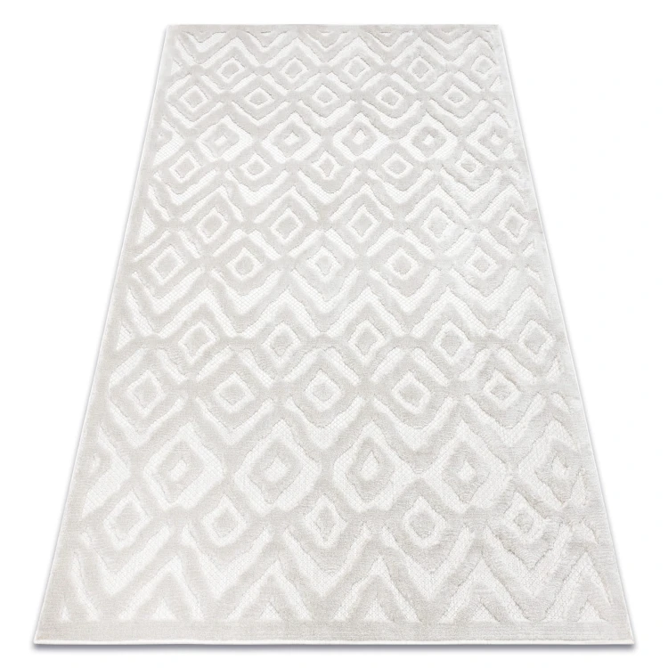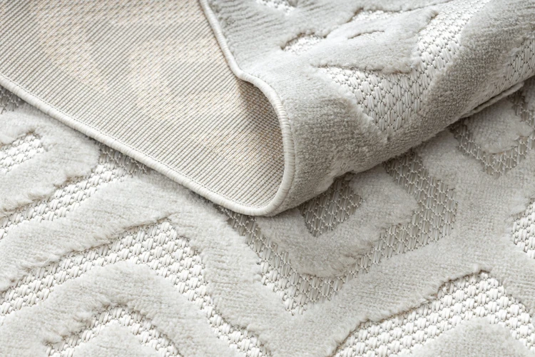 Beżowy dywan z geometrycznym wzorem zygzaka, który doda salonowi nowoczesny charakter i ciepłą atmosferę.