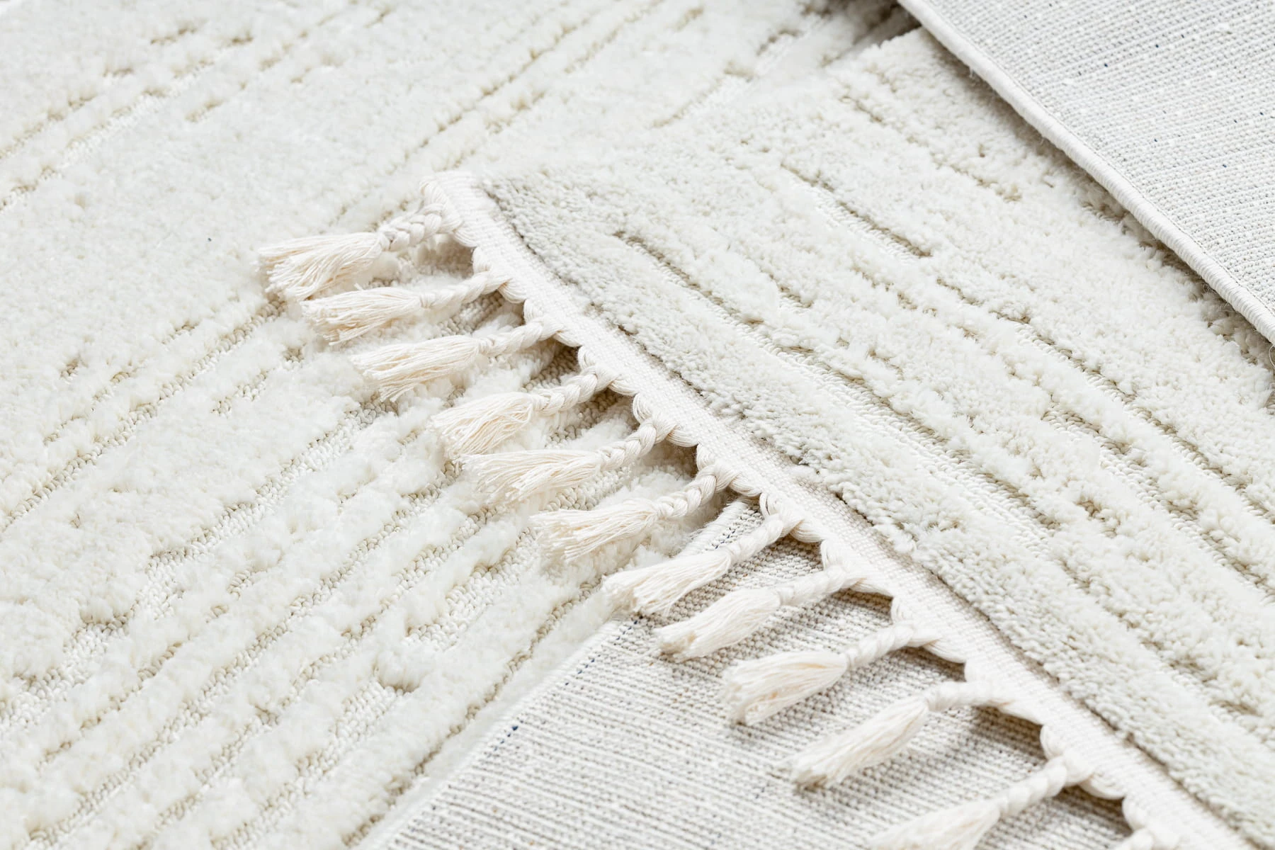 Kremowy dywan shaggy z runem 16 mm, który doskonale sprawdzi się w korytarzu, tworząc jasną i przytulną przestrzeń.