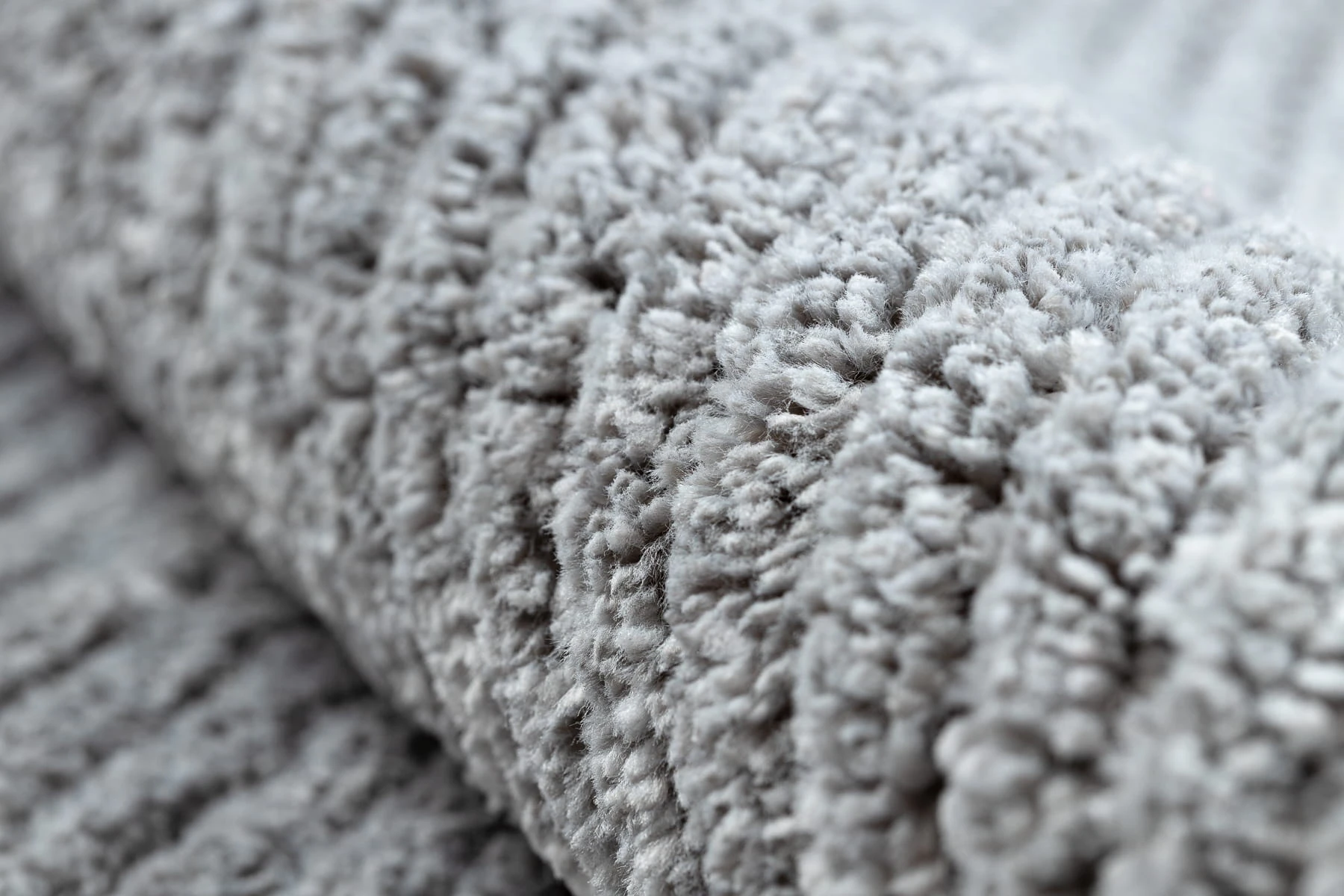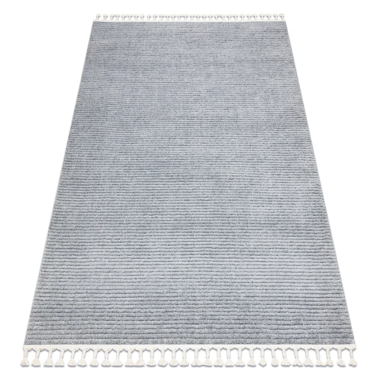 Szary dywan shaggy z subtelnym wzorem w paski, który doda salonowi spokojny charakter i przytulną atmosferę.