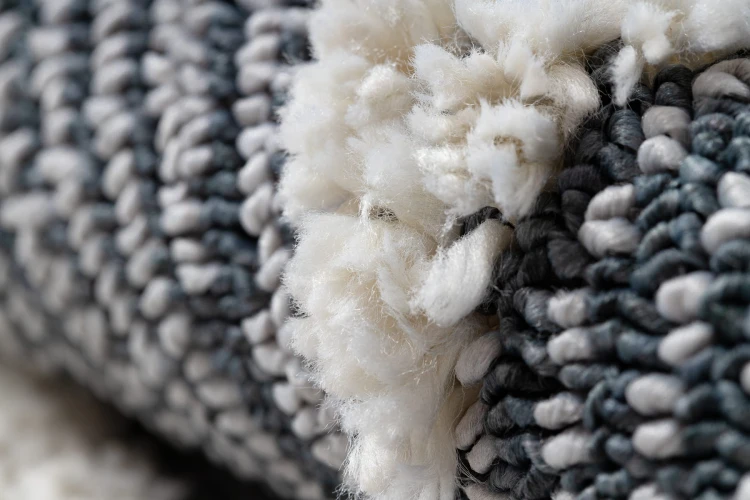 Antracytowy dywan shaggy z geometrycznym wzorem rombów, który doda salonowi nowoczesny charakter.