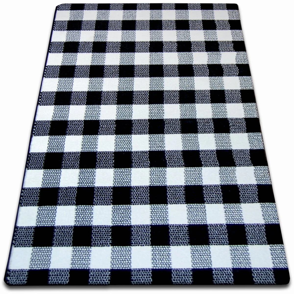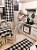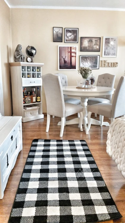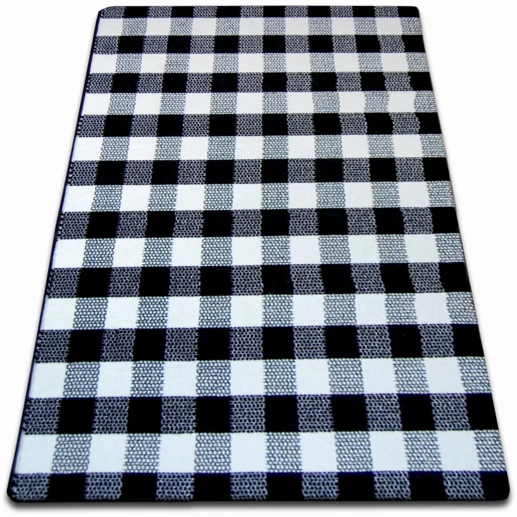 Kremowo-czarny dywan z klasycznym wzorem kratki, który doskonale wpisze się w eleganckie wnętrza salonu lub pokoju.