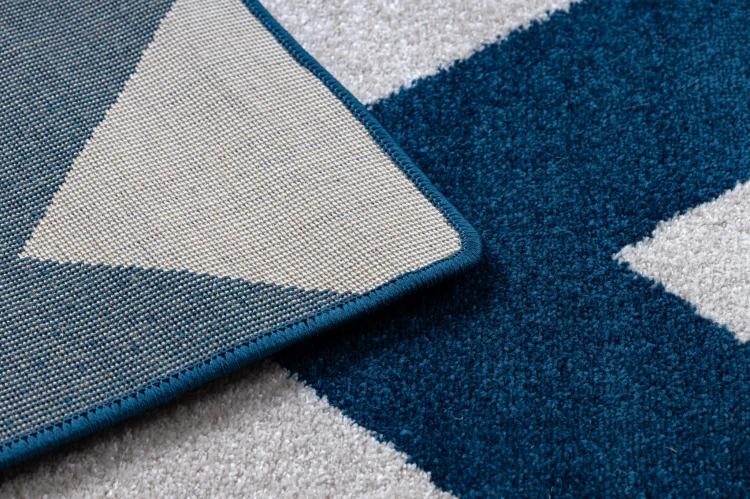 Niebiesko-biały dywan z geometrycznym wzorem, który wprowadzi do wnętrza świeży, nowoczesny charakter.