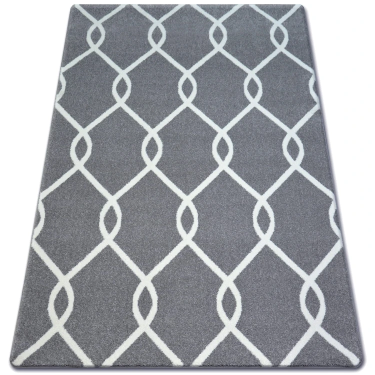 Szaro-kremowy dywan z geometrycznym wzorem, który doskonale wpisze się w nowoczesny salon lub pokój.
