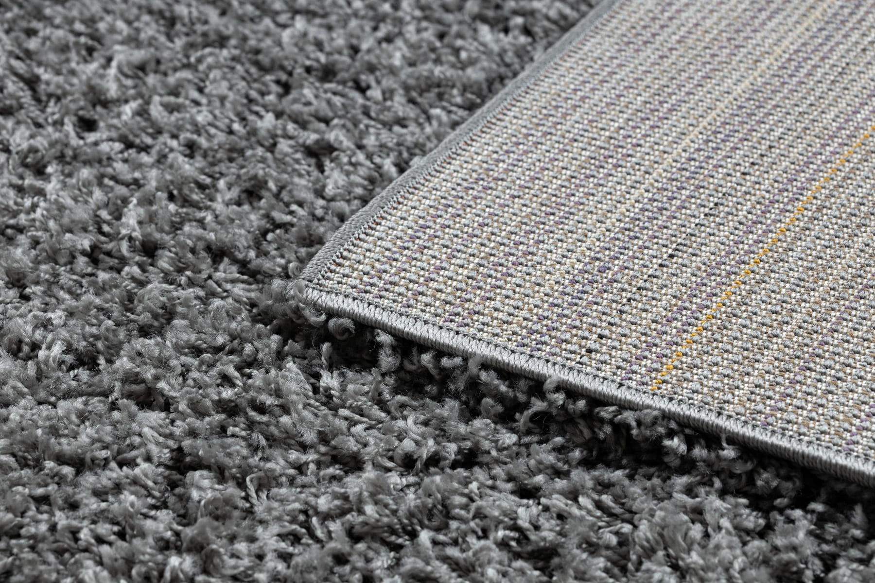 Szary dywan shaggy z runem 50 mm, który stworzy w salonie przytulną strefę relaksu.