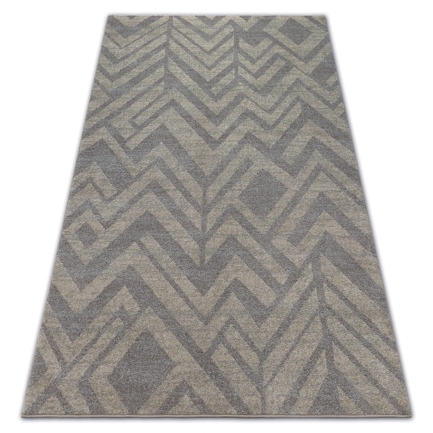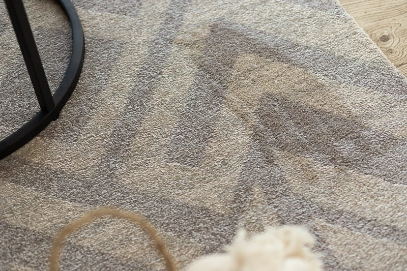 Beżowy dywan z geometrycznym wzorem jodełki, który doda pomieszczeniu ciepły, naturalny charakter.