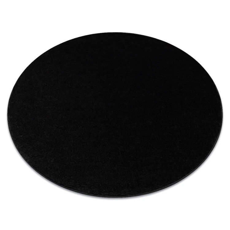 Czarny okrągły dywan z geometrycznym wzorem, który nada salonowi elegancki charakter i podkreśli nowoczesny styl wnętrza.