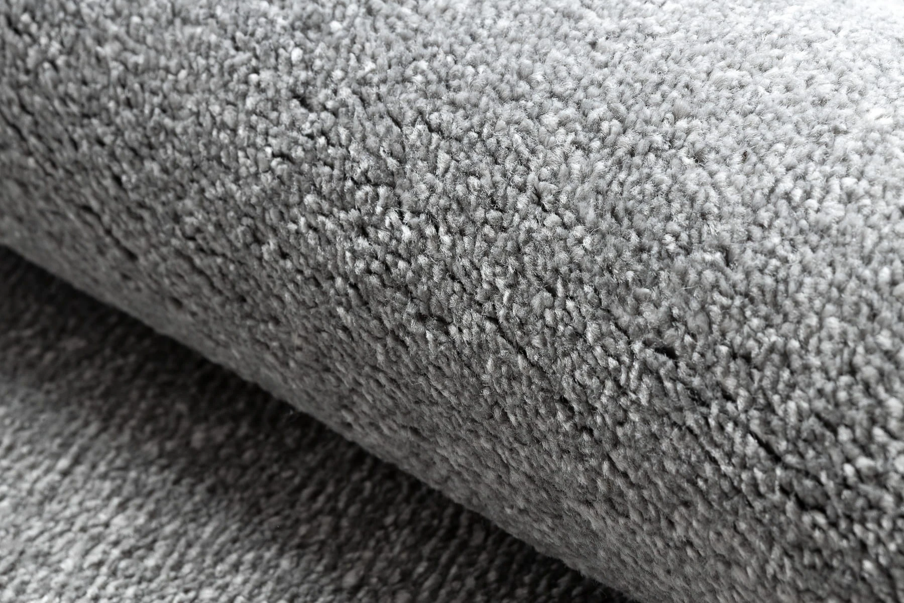 Jednokolorowy szary dywan z krótkim runem, który doskonale sprawdzi się w salonie lub pokoju, tworząc stonowaną podstawę dla każdego wnętrza.