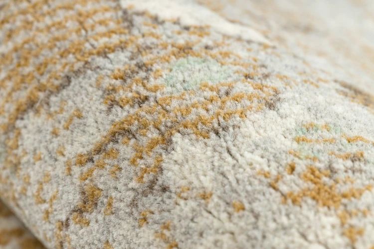 Odkurzaj dywan raz w tygodniu. Świeżą plamę zetrzyj w ciągu 15 minut — delikatnie od krawędzi do środka, nie szorując. Używaj chłodnej wody i łagodnego detergentu do wełny. Nigdy nie używaj gorącej wody oraz środków z tlenem aktywnym. Raz w roku oddaj do profesjonalnej pralni.