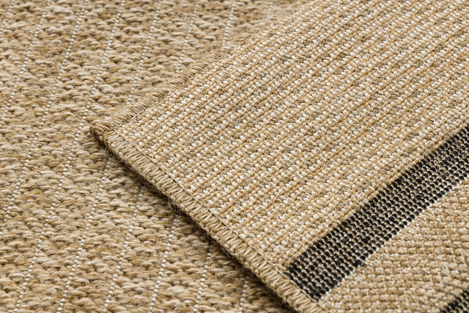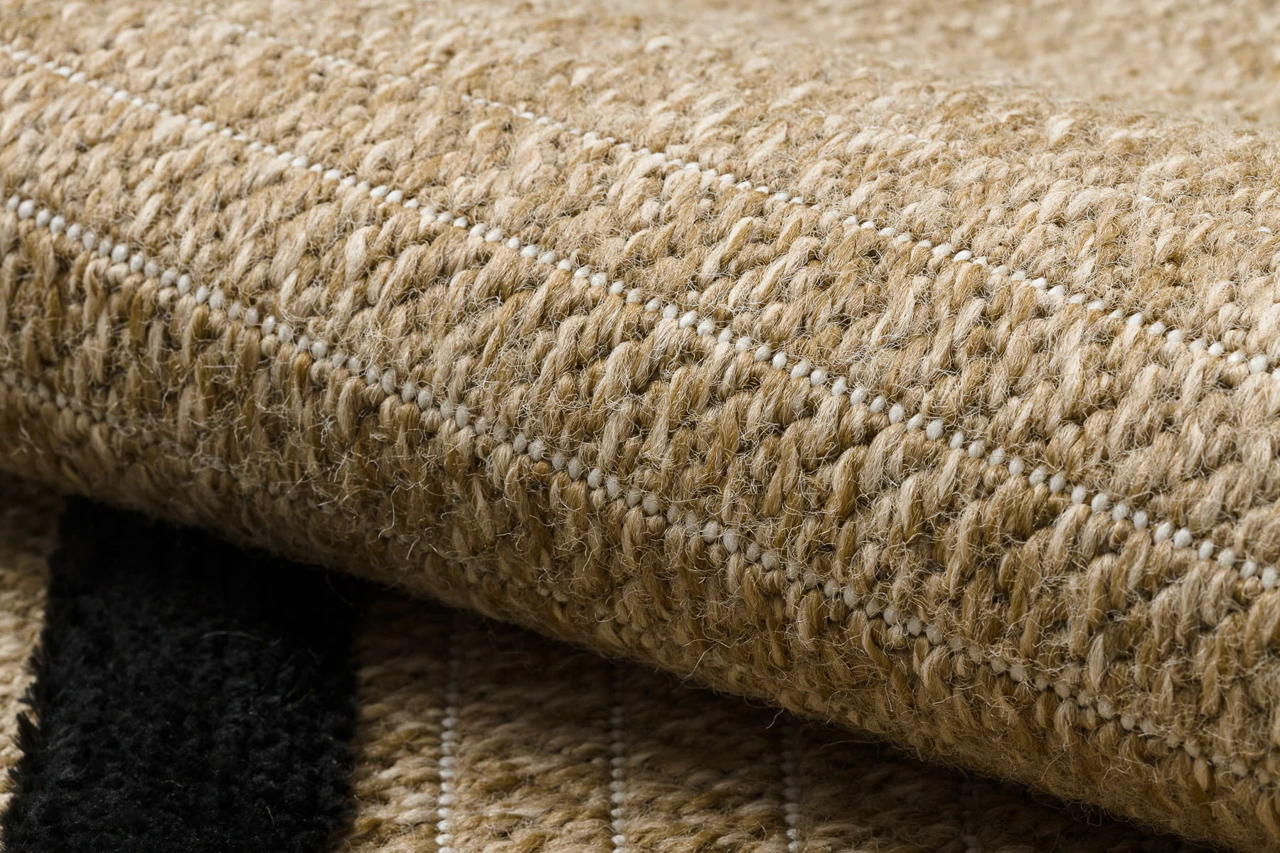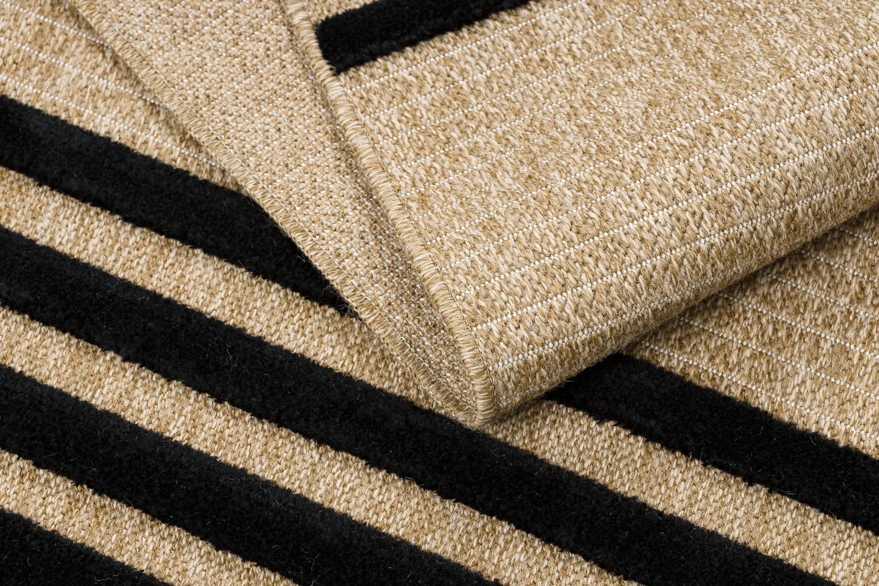 Beżowo-czarny dywan z geometrycznym wzorem linii, który doda salonowi nowoczesny charakter i podkreśli elegancję wnętrza.