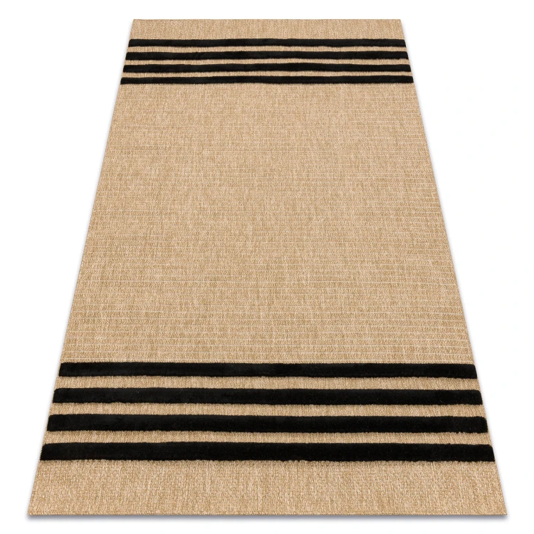 Beżowo-czarny dywan z geometrycznym wzorem linii, który doda salonowi nowoczesny charakter i podkreśli elegancję wnętrza.