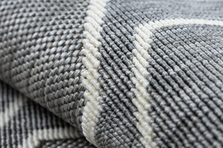 Sznurkowy dywan w odcieniach szarości, odporny na warunki atmosferyczne, idealny na taras i balkon.