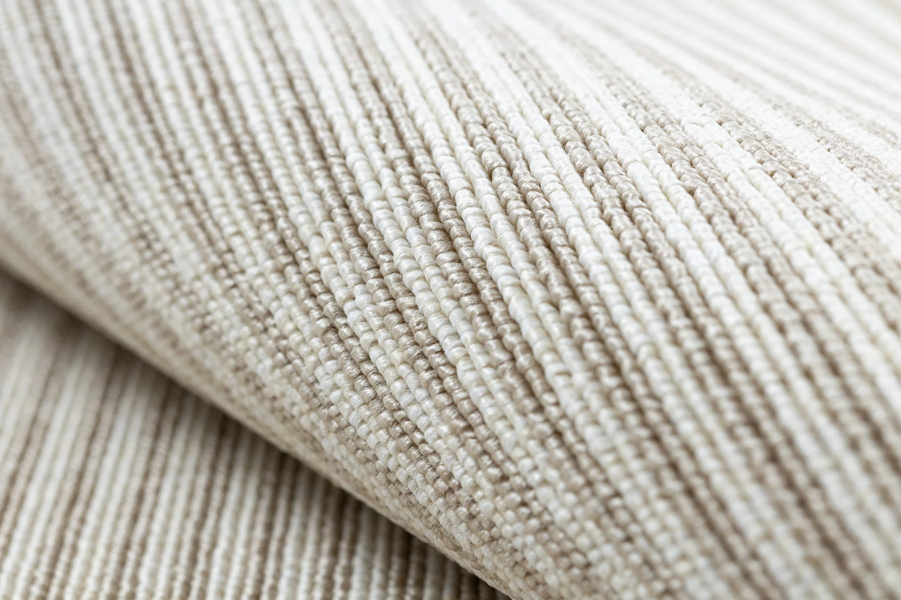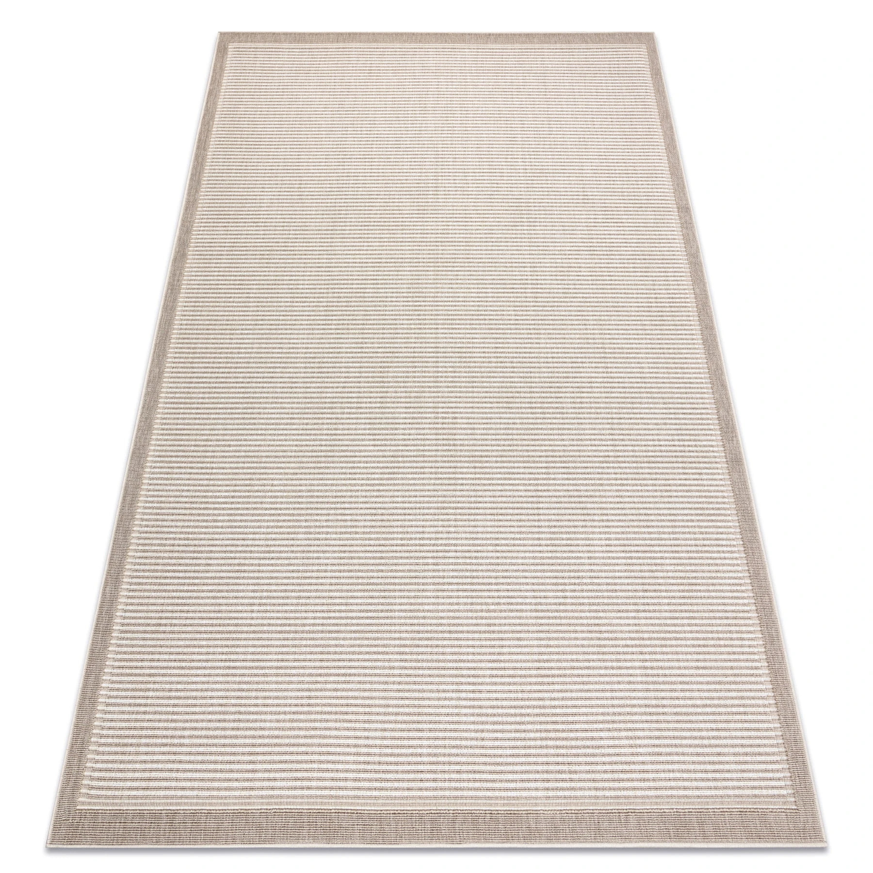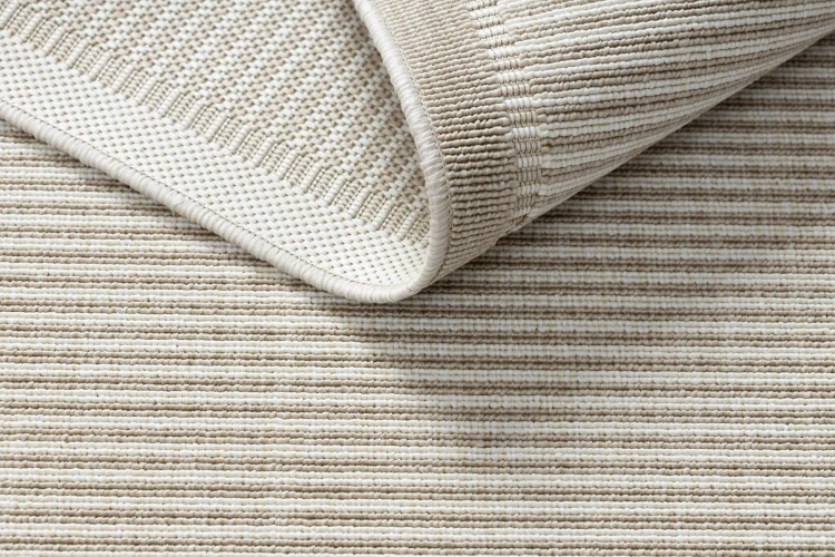 Sznurkowy dywan w odcieniach beżu, odporny na warunki atmosferyczne, idealny na taras i balkon.