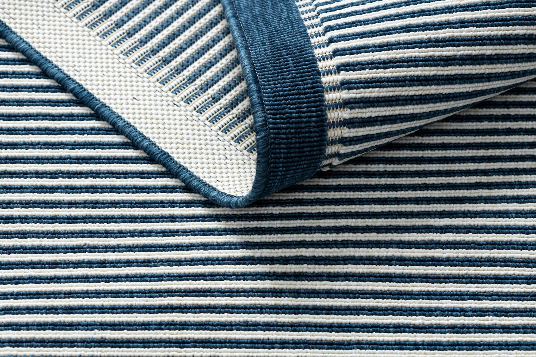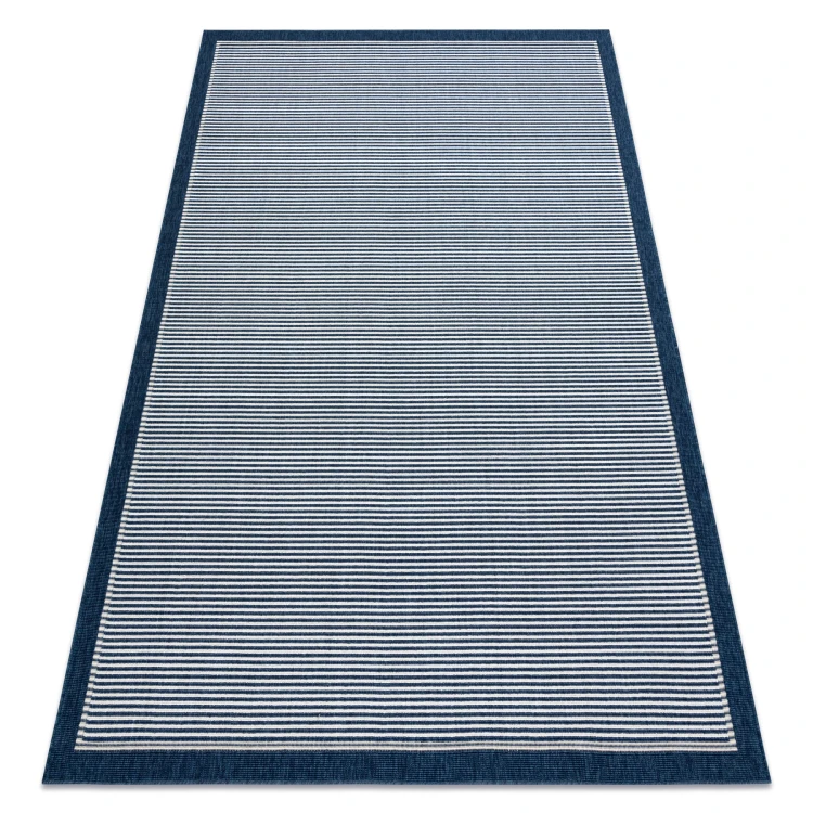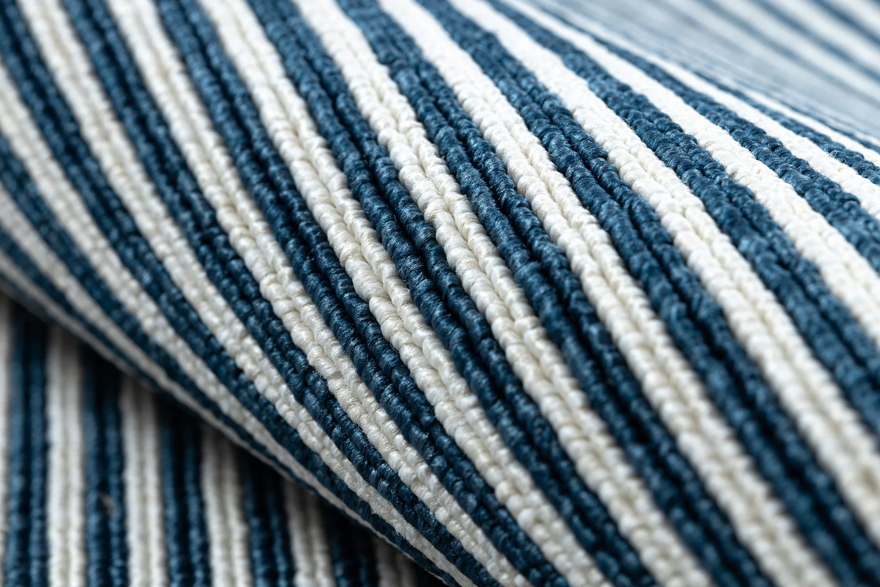 Sznurkowy dywan w odcieniach niebieskiego, odporny na warunki atmosferyczne, idealny na taras i balkon.