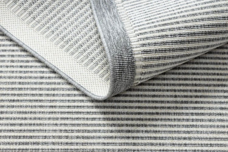 Sznurkowy dywan w odcieniach szarości, odporny na warunki atmosferyczne, idealny na taras i balkon.