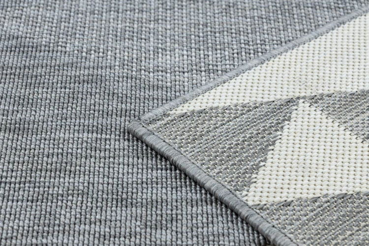 Sznurkowy dywan w odcieniach szarości, odporny na warunki atmosferyczne, idealny na taras i balkon.